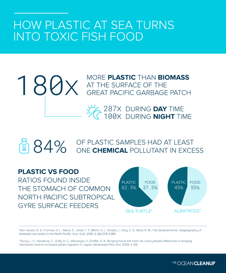 At present, coloring the surface of the Great Pacific Garbage Patch is 180 percent more plastic than marine life, according to The Ocean Cleanup’s research. A study titled The Impact of Debris on Marine Life, published in the Marine Pollution Bulletin in 2015, enlists marine debris “among the major perceived threats to biodiversity.”