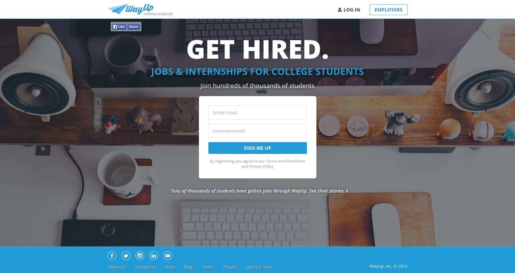 Nina Boyd: WayUp launched in September 2014 by former Google employee Liz Wessel (26 years-old) and former McKinsey analyst JJ Fliegelman (26 years-old). It was originally inspired by a side project that the two put together during their senior year at the University of Pennsylvania, where they learned first-hand about how tough and inefficient the job-search process was for college students. In July of 2014, they decided to leave their dream jobs and officially create Campus Job, which would later change it’s name to WayUp, to help students find all types of opportunities – internships, part-time jobs, brand-ambassador positions, entry-level jobs for graduating seniors, and more.