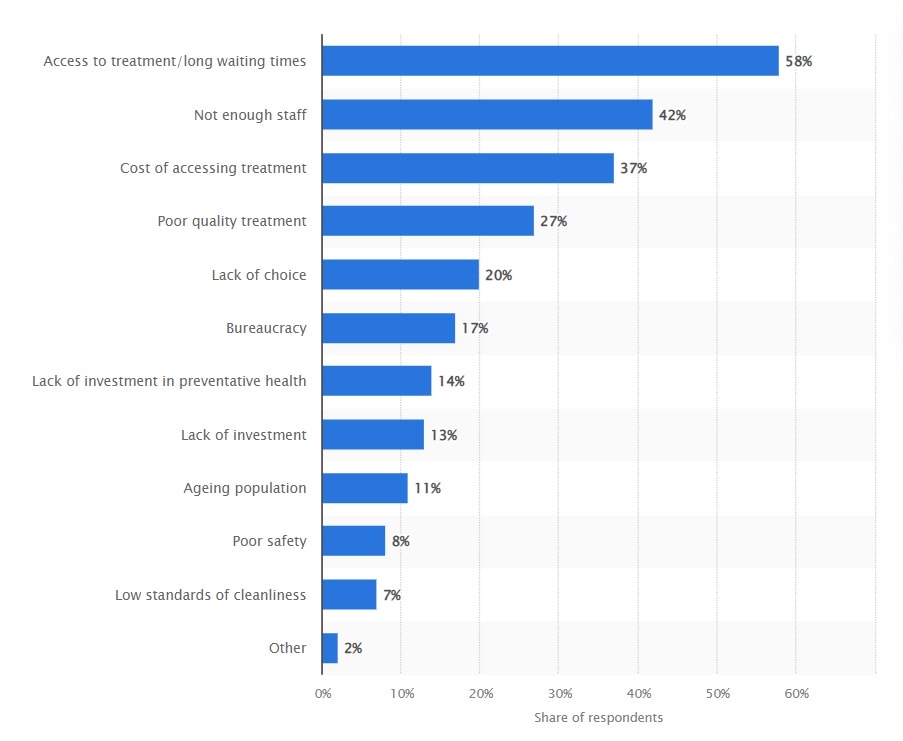In Turkey, according to the survey conducted by Ipsos in 2022, almost 60 percent of the respondents considered that access to treatment and long waiting times were the biggest problems facing the healthcare system in Turkey. A further 42 percent stated that not having enough staff in healthcare was the biggest problem: