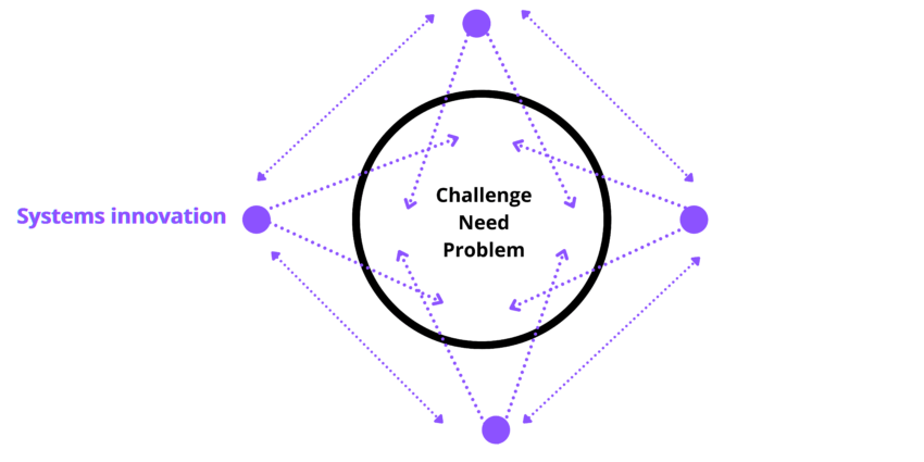 Two graphics below highlight the difference between a one-off innovation and a systems innovation: