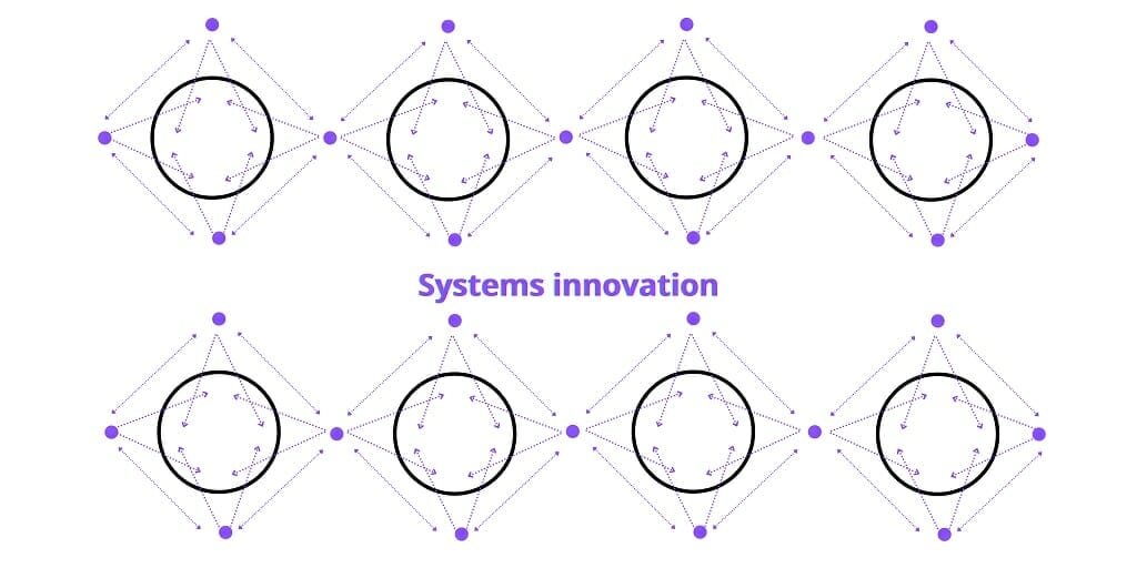 Two graphics below highlight the difference between a one-off innovation and a systems innovation: