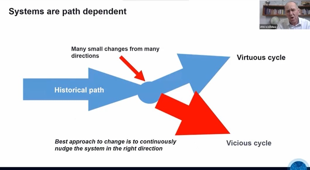 If we go into a country and try to radically change it, and the interventions may be good interventions, but run against the local values of that country, they are unlikely to work. Our view of systems is to use many small nudges, and from multiple directions, to change the dynamics of a system.
