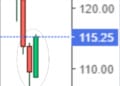 More specifically, looking at this chart, one sees this is the type of bullish engulfing pattern, where the green candle encompasses the preceding red one: