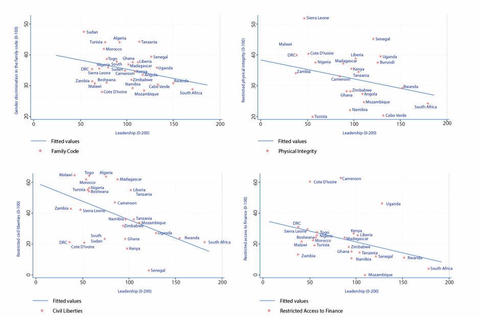 Figure 2: Relationship Between Leadership, Family Code, Restricted Physical Integrity, Civil Liberties and Access to Finance