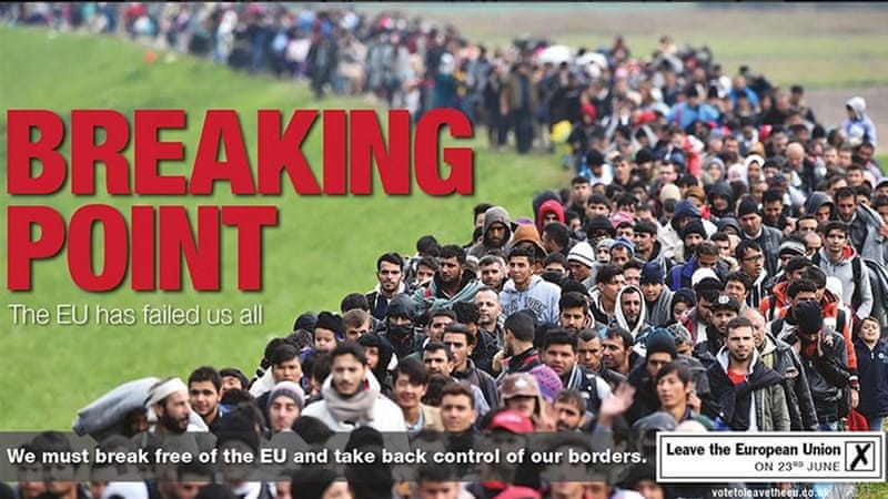 In the Photo: Brexit poster used by UKIP in 2016 campaign Source: This Photo by Unknown Author is licensed under CC BY-SA-NC