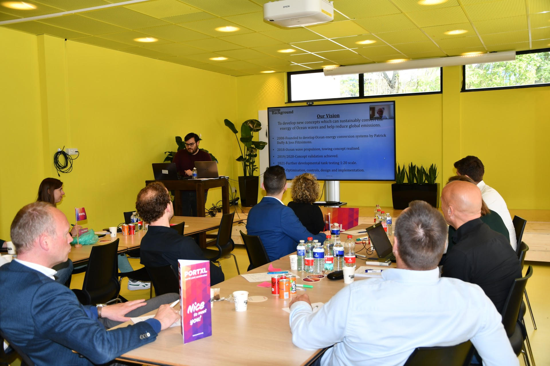 The picture above shows one of PortXL’s live validation sessions. Last April, four innovative companies presented via Zoom while one joined in person, flying all the way from the USA. In total there were fourteen representatives joining the session from partners Port of Rotterdam, Van Oord, Boskalis, Damen, City of Rotterdam, Ampelmann & InnovationQuarter, as well as two guests.