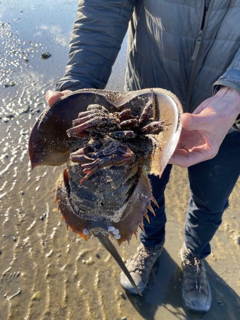 I chose the horseshoe crab as my biodiversity ambassador for several reasons. One is time. They first emerged in the Ordovician Period 450 million years ago, more than 447 million years before the first human Homo habilis and 219 million years before the first ever dinosaur on Earth. My hero Sir David Attenborough and I share a birthday – May 8. He is 95 and his lament in A Life on Our Planet released last year was that so much had changed so quickly. Watching these crabs, I felt that keenly. 66% of wildlife populations have gone in my life time. In the next few decades, a million species may become extinct.