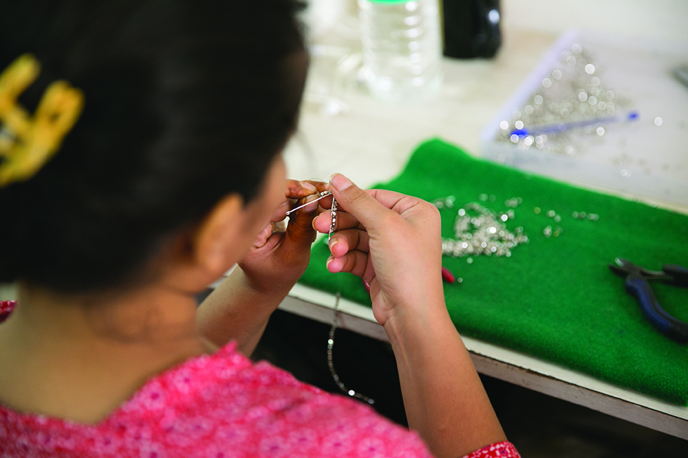 In the photo: One of PURPOSE’S female jewelry artisans Credit: PURPOSE