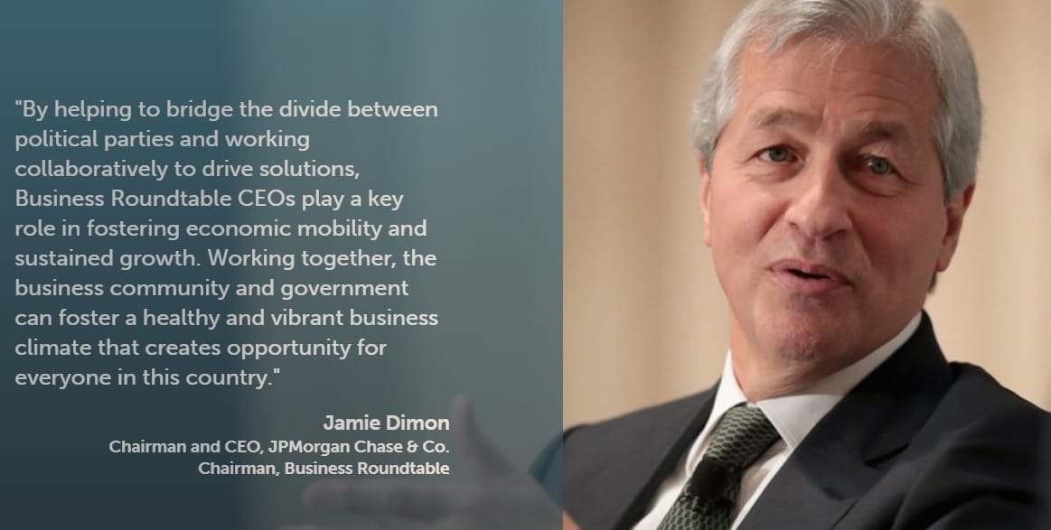 Along with Dimon, the statement received signatures from top business leaders including Amazon’s Jeff Bezos, Apple’s Tim Cook, Oracle’s Safra Catz, Bank of America’s Brian Moynihan, Boeing’s Dennis A. Muilenburg, GM’s Mary Barra, Bayer’s Philip Blake, Coca Cola’s James Quincey and BlackRock chief Larry Fink.