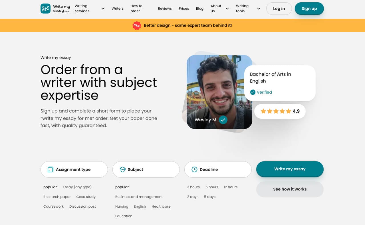 WriteMyEssay.com makes the whole process feel personal. The interface is intuitive, and the order page looks clear even for first-timers. You can browse writers by subject and directly message them about your task.