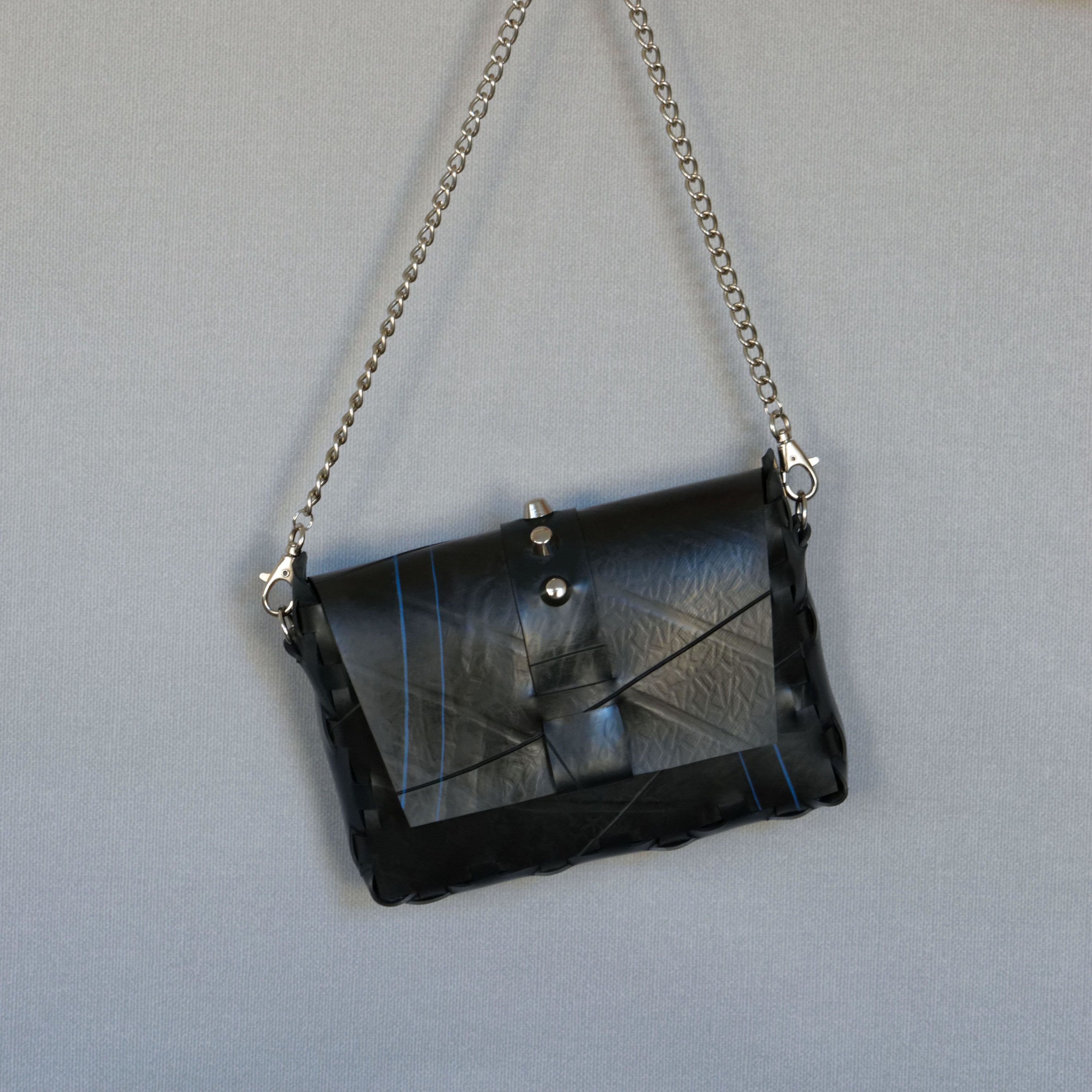 SP: When I first started using that material I immediately fell in love with it. Not only was it strong and durable, it was also really tactile. The fact that it was a recycled material really was a bonus, and it also meant that every bag would be unique with individual markings and original prints from the tubes.