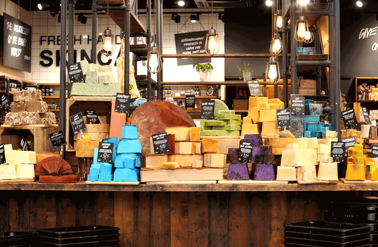 In the photo: Lush Fresh Handmade Cosmetic’s organic,colorful soap bars on display in store front. Photo credit: TViolet