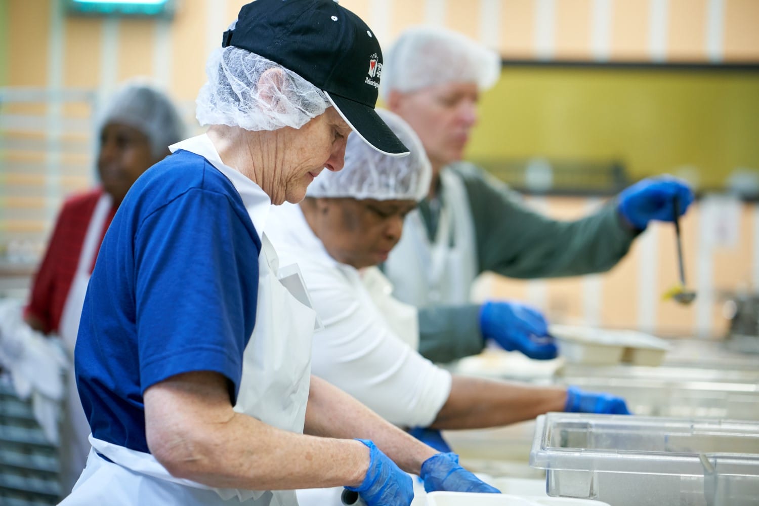 In the photo: A group of volunteers preparing meals at Food & Friends. Photo credit: Food & Friends
