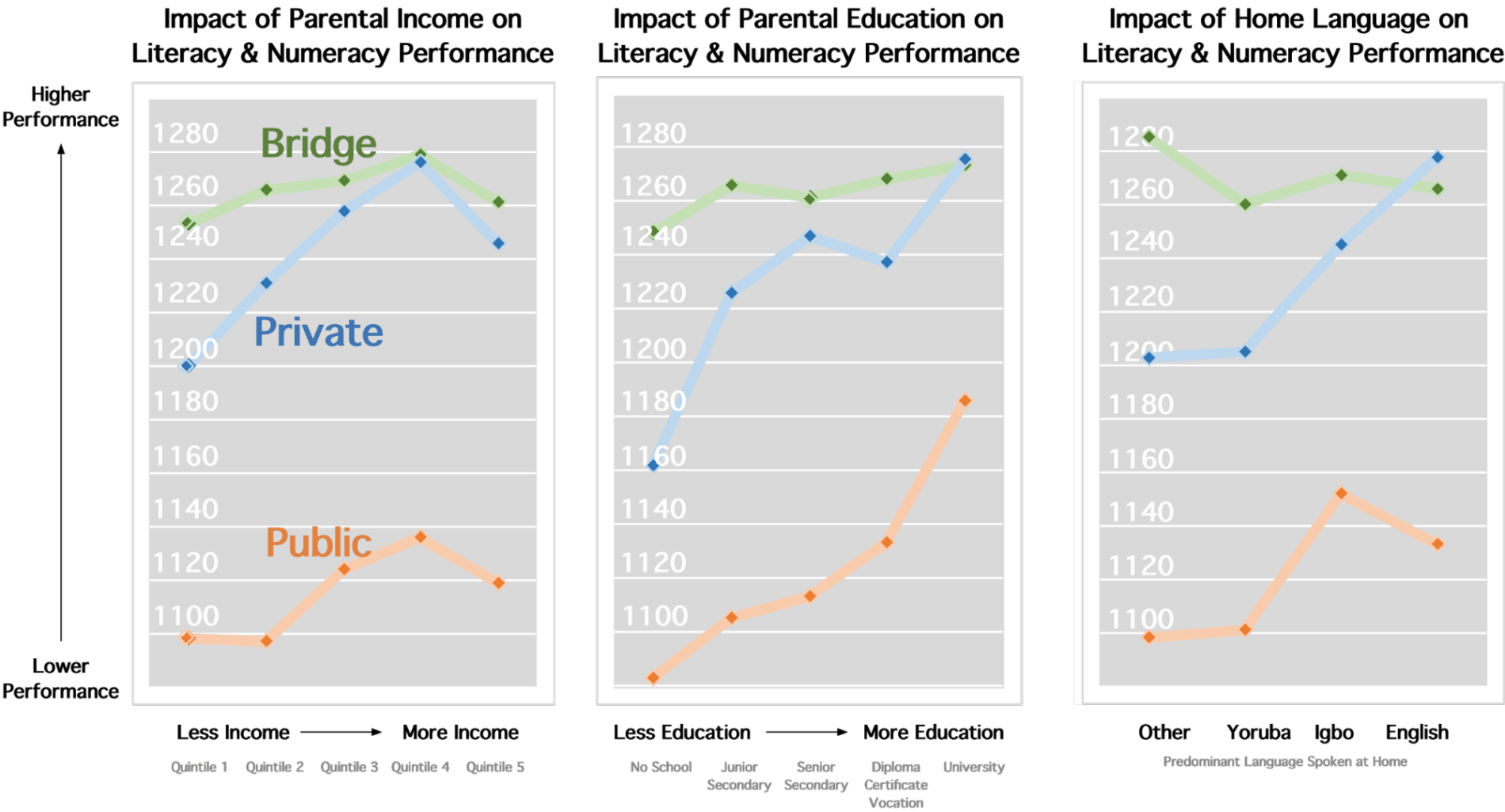 Parental income, parental education, and speaking English at home had no effect on Bridge students’ academic performance in Lagos, according to a DFID study.