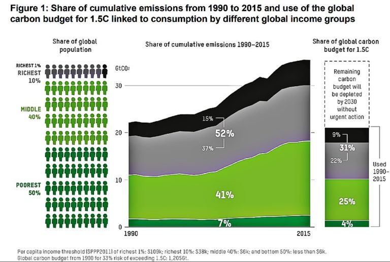 Adding insult to injury, the rich are those – as a group of people – most responsible for polluting the environment from 1990 to 2015, a critical period in which annual emissions grew 60% and cumulative emissions doubled.