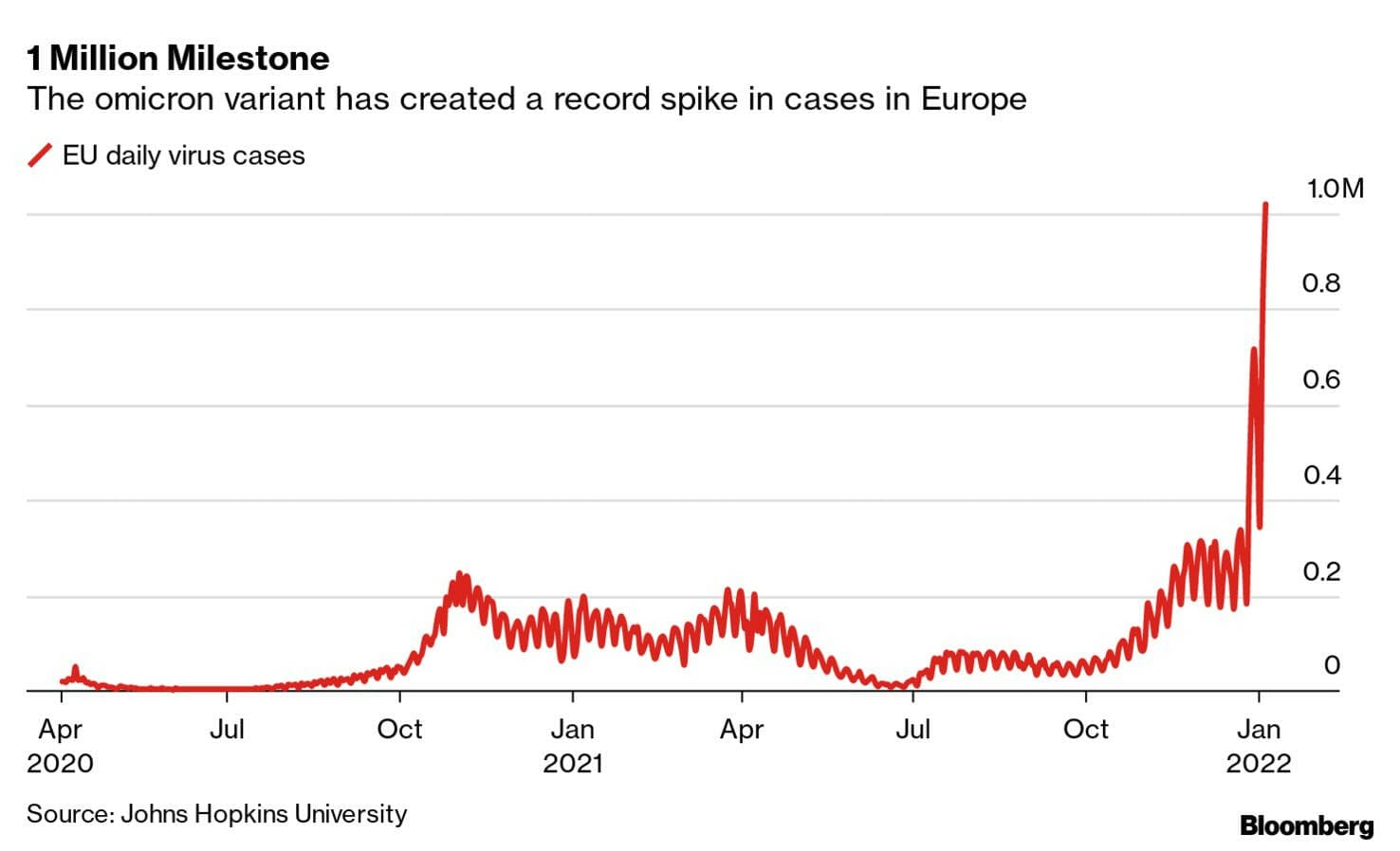 Cases numbers are shooting up everywhere and especially in Europe where over one million people tested positive on January 5, 2022: