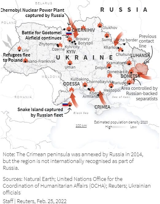 The question on everyone’s mind is, now that the Russian army – those 150,000 troops Putin has spent months amassing on Ukraine’s borders – has entered Ukraine, what happens next? Can the Russians take control of the capital city Kyiv and other city centers or will it degenerate into a long drawn-out urban guerilla?
