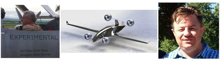 In the Photo: A Ed De Reyes, Oliver Garrow and a rendering of Sabrewing Aircraft. Photo Credit: Sabrewing Aircraft Company.