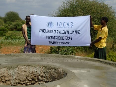 In the Photo: Shallow Well Rehabilitation. In December of 2015, IDEAS partnered with the Water and Development Committee Somalia, who received a $1,000 Solutions Fund microgrant to rehabilitate a shallow well in Southwestern Somalia. This project showed how partnerships can transcend national boundaries and global challenges to directly address many interlinked SDGs such as SDG 1, 2, 3, 5, 6, 11, 12, 13, and 17. Photo Credit: IDEAS /Christopher Stampar