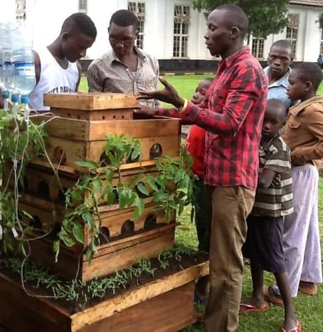 In the Photo: Vertical Microgardening. In December of 2015, IDEAS For Makerere University used a $1,000 Solutions Fund microgrant to design and build their own vertical microgardening units, which helps to improve food security and nutrition in dense urban areas while tackling climate change and working with a variety of partners for successful implementation and scaling. Photo Credit: IDEAS /Christopher Stampar