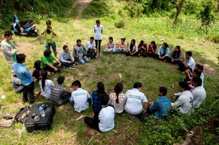 In the Photo: Reforestation effort in Nepal in 2016. IDEAS For Us leads a Hive session in Pokhara, Nepal where students spent hours developing an idea into an SDG focused project that has clear goals, metrics, and performance indicators. Photo Credit: IDEAS/Christopher Stampar