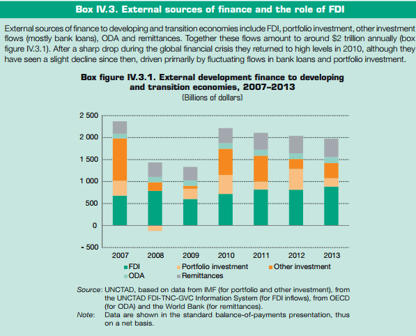PHOTO: Financial Flows to Developing and Transition Economies, including Foreign Direct Investment (FDI) and Official Development Assistance from donor countries (ODA) – they amount to around $2 trillion/year (source: UNCTAD World Investment Report, Investing in the SDGs, Chapter 4 )