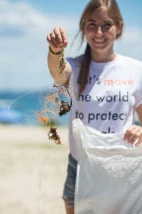 IN THE PHOTO: Ingrid Giskes at a beach clean-up at Frenchman’s Bay in southern Sydney, Australia. Although the beach initially looked clean, there were still 12 large bags / 2400 liters of soft plastic, food containers, glass, and rusty boat parts collected. PHOTO CREDIT: World Animal Protection