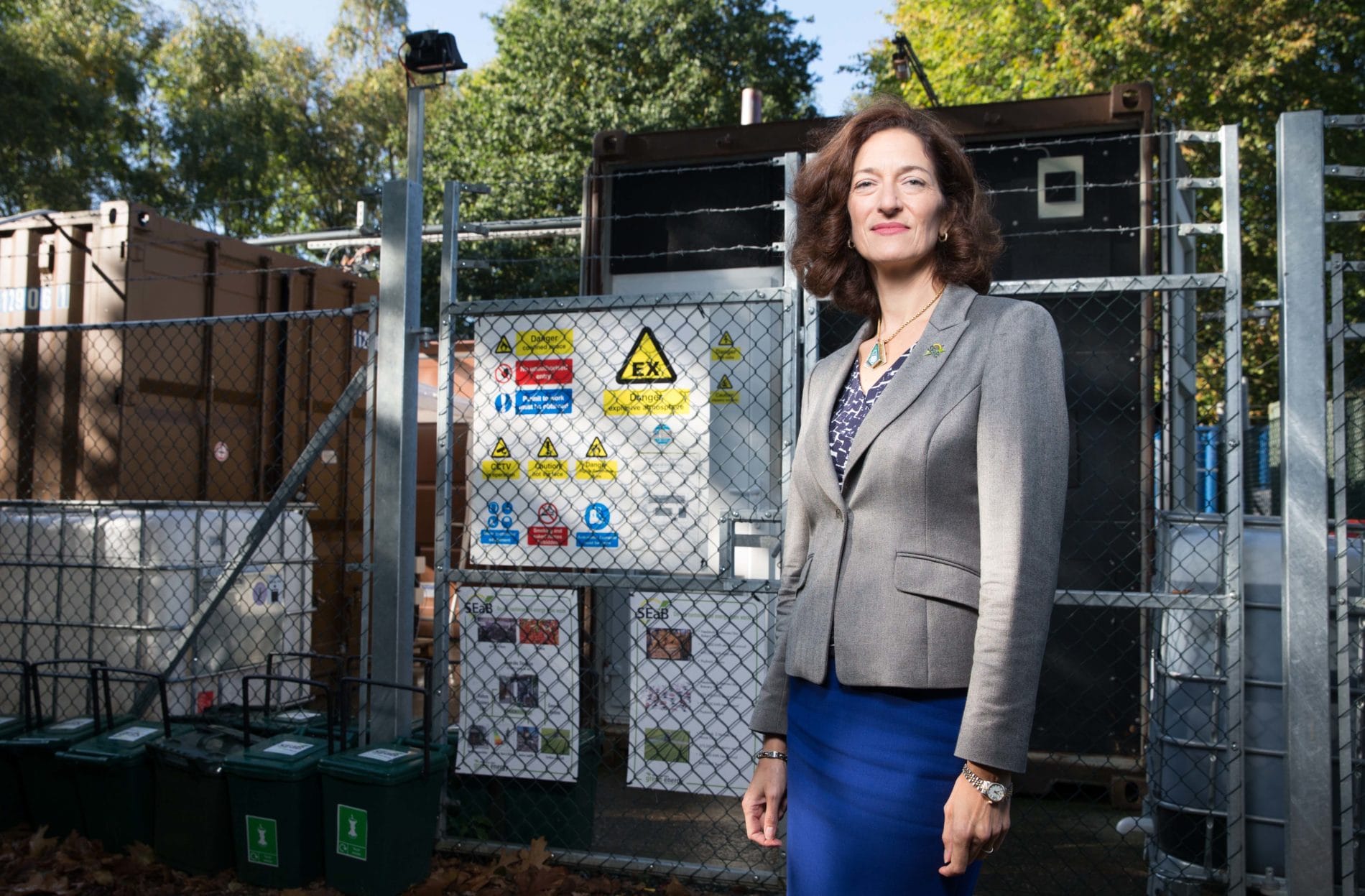 In the photo: Sandra Sassow with the Anaerobic Digester Machine. Photo Credit: SeAB Energy
