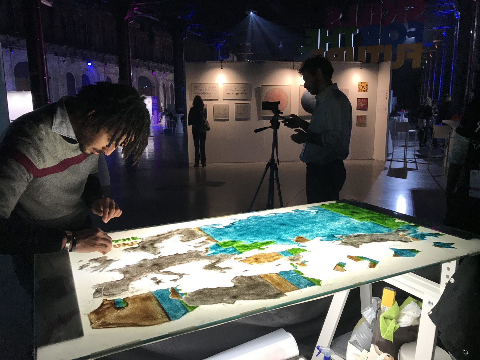 In the Photo: Sand artist, Andrew Magdy, portrayed the attainment of education in Europe and surrounding. Photo Credit: Florence Nathania