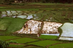IN THE PHOTO: Preparation of soil before planting rice seedlings on terraced hillsides. PHOTO CREDIT: FAO/Antonello Proto
