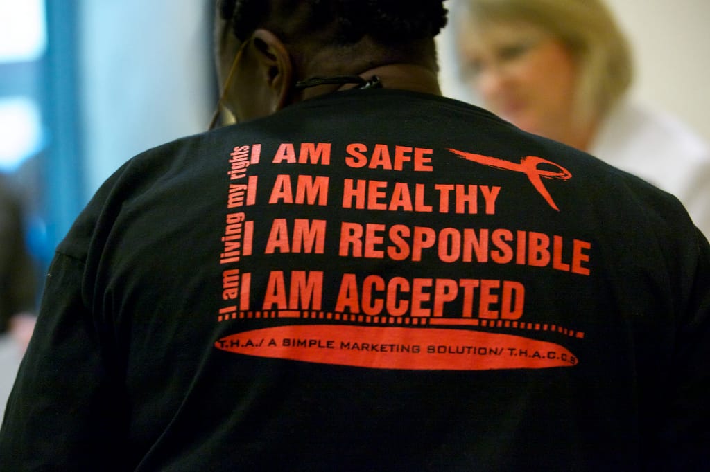 In the Photo: Creed on an HIV awareness t-shirt. Photo Credit: Steve Shapiro/2011 Caribbean HIV Conference