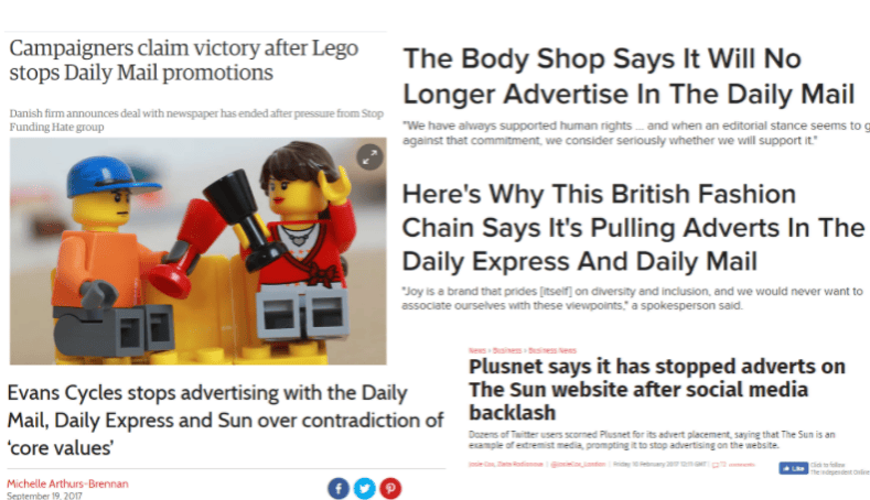 Within minutes I was getting calls from journalists. That evening Stop Funding Hate’s co-founder Rosey Ellum was interviewed on primetime TV news. Lego’s single tweet triggered media headlines not just in the UK but across the globe.