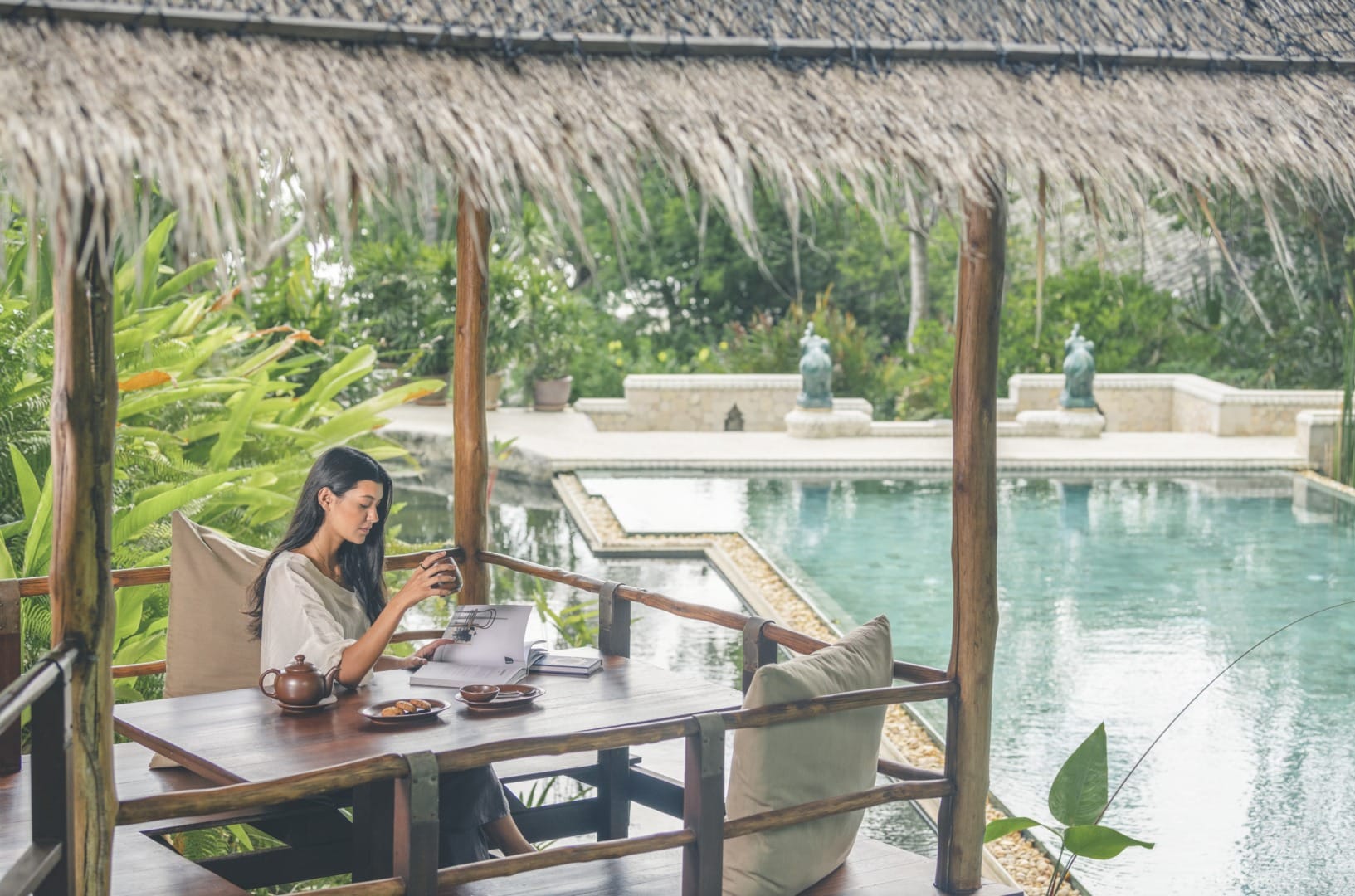 Karina Stewart: And the kind of wind… in different seasons it feels different. The whole summer season has this quality of the wind, which is fantastic. You know, as we were thinking about Kamalaya and the type of atmosphere we were trying to create, we were focused on our values. We knew we wanted to create a place for transformation. Then you have to ask, what is transformation? It’s not just improving what you’re already doing. It can be that. But for us it was about creating an environment where people could fulfill their potential. When you sleep well, you feel well rested; when you eat well, you feel like the food you’re eating is giving you more energy; when your senses feel revitalized by nature, you are alive to sounds, smells and touch; when your mind and your nervous system is in balance, then we can talk about our potential. Our vision. What do I imagine I can become? What environment will fertilize and nurture that potential in everyone? One of the things we found was we wanted to slow people down. Have you noticed that?