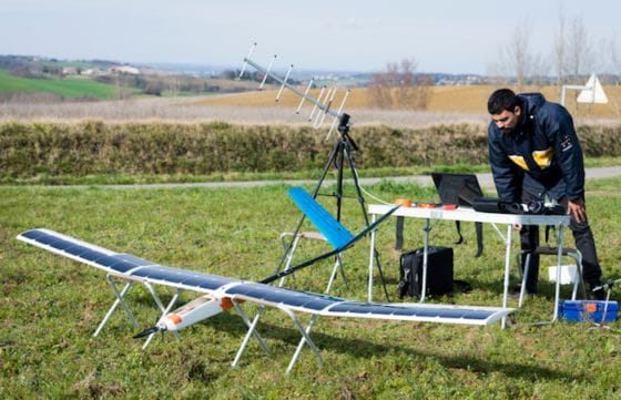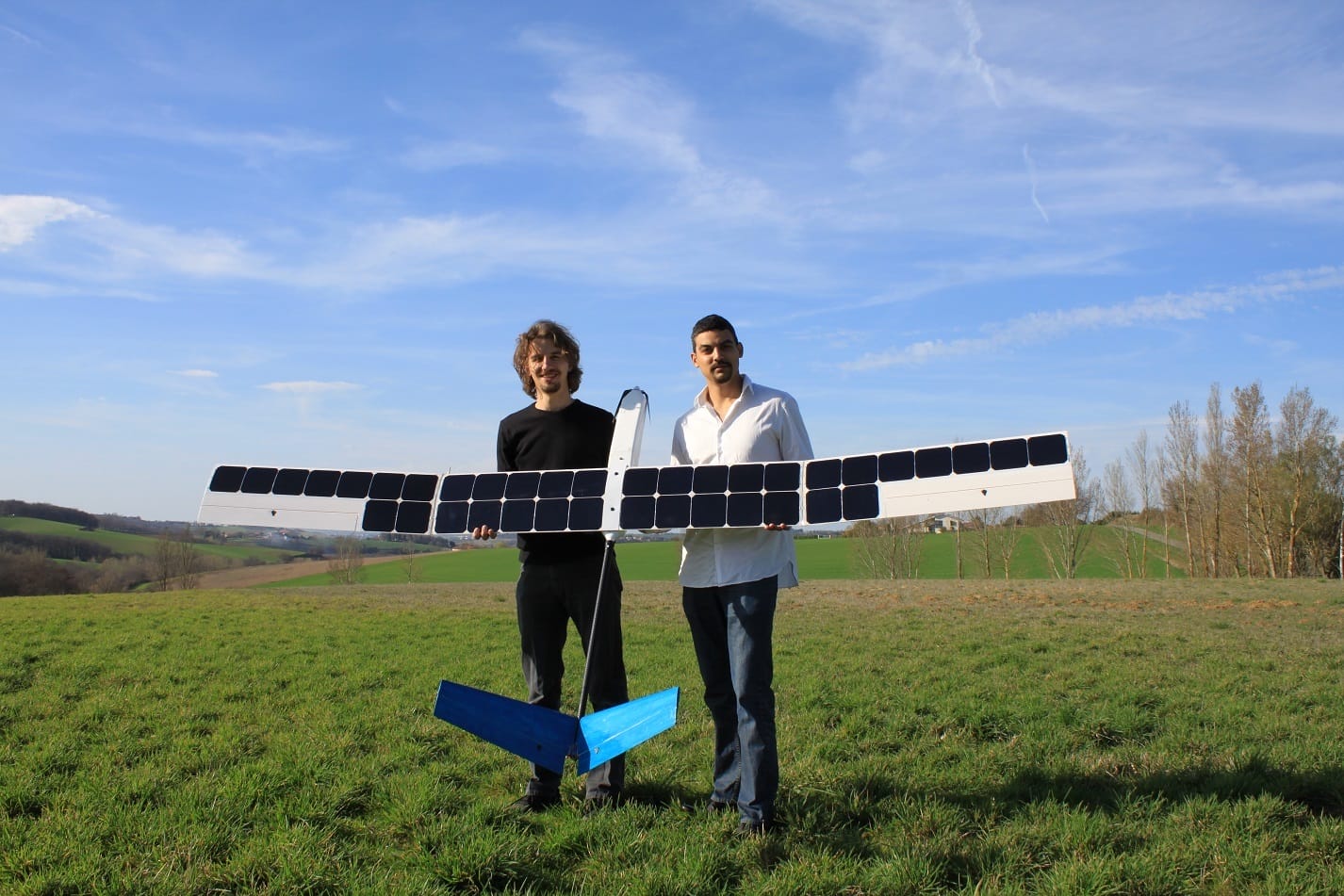 In the Photo: Laurent Rivière and his co-founder Laurent Moure launching the solar drone. Photo Credit: Sunbirds SAS