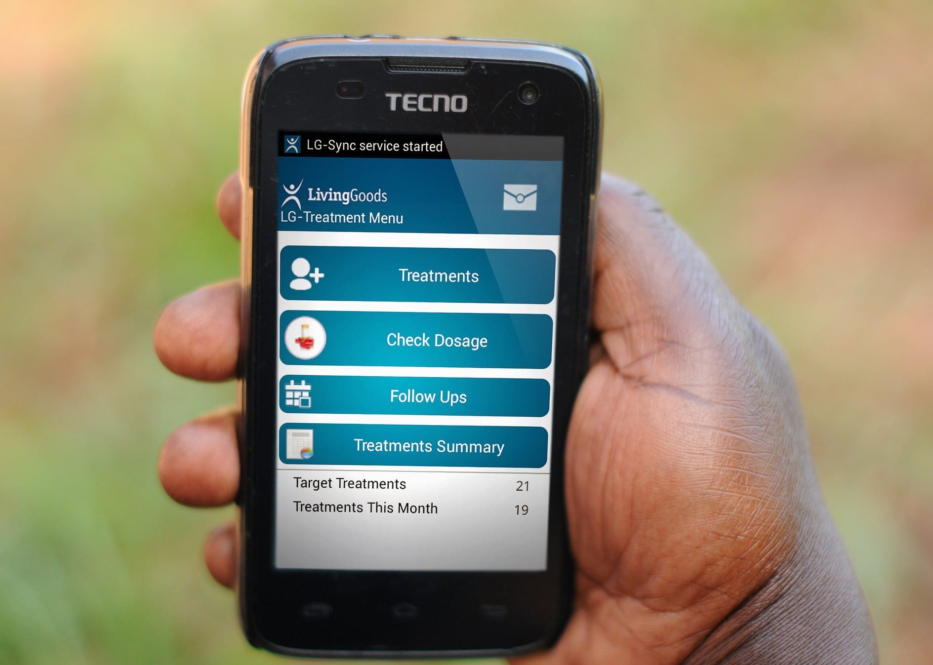 In the Photo: A Community Health Promoter (CHP) uses a smartphone to keep track of treatments. Photo Credit: Living Goods