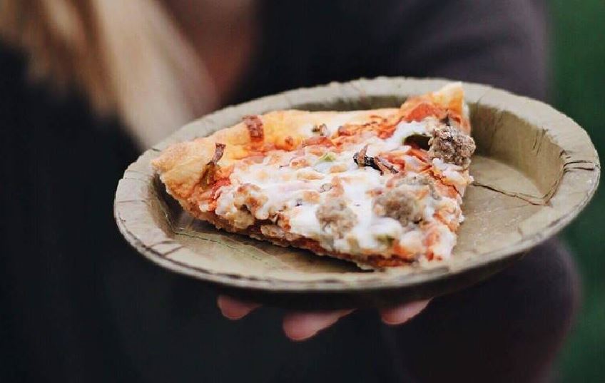 Plates made by Leaves Plate Company have a smaller carbon footprint in the manufacturing process and are biodegradable and compostable.