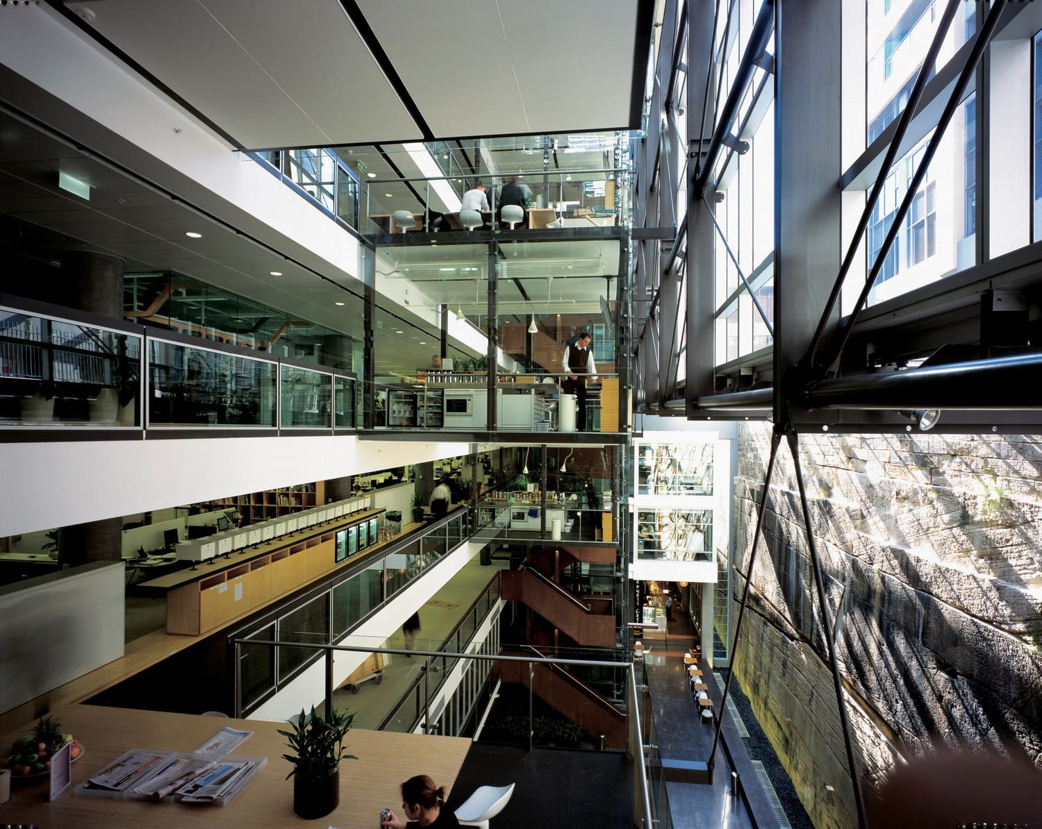 What makes this an exceptional building is its mix of contemporary features along with one of Sydney’s oldest sandstone walls, which provides natural cooling to the building’s atrium. This nine level office tower by designed by balancing commercial and environmental objectives, has its primary façade overlooking the harbour and showcases one of the largest floor plates of up to 2,000 square meters. Its internal structure contributes to a sense of openness and connection to the external environment, resulting in great workspace efficiency and an optimum comfort. In addition to having a rooftop garden, this sustainable building has a terrific ventilation system as well as well-shaded facades, thus reducing CO2 emissions by more than 30 percent. 30 The Bond, designed by PTW Architects in conjunction with WHO interior architecture and Bovis Lend Lease, was the first project to be awarded a “Green Star – Office As Built” certified rating and also the first building in Australia to commit to achieving five stars under the Australian Building Greenhouse Rating system (now NABERS).