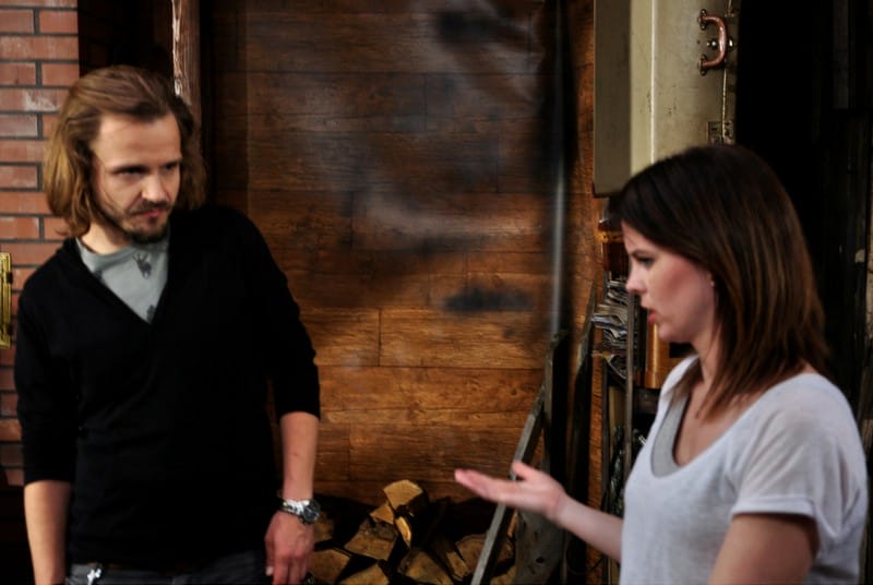 IN THE PHOTO: PAWEL PALCAT AND PAULA PRESTON ON THE SET OF “ANNA AND MODERN DAY SLAVERY” CREDIT: MAGDA OLCHAWSKA