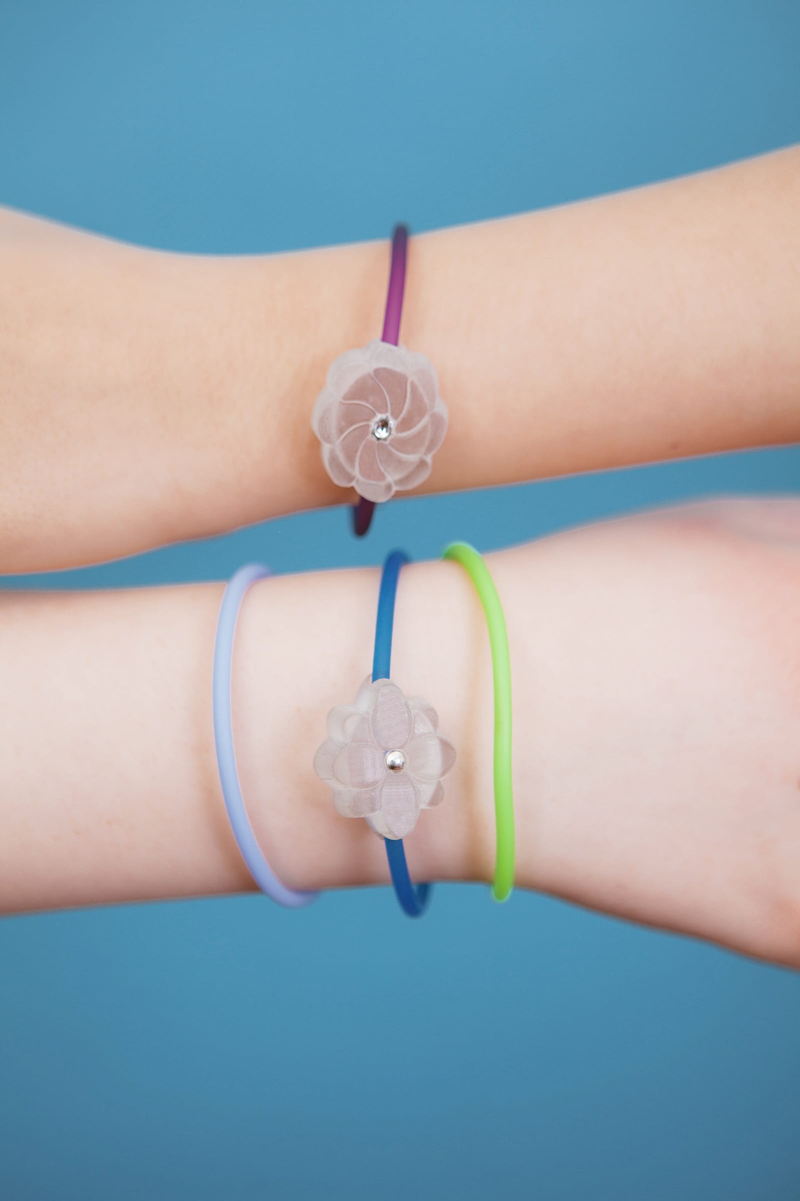 In the photo: Two girls using their Jewelbots