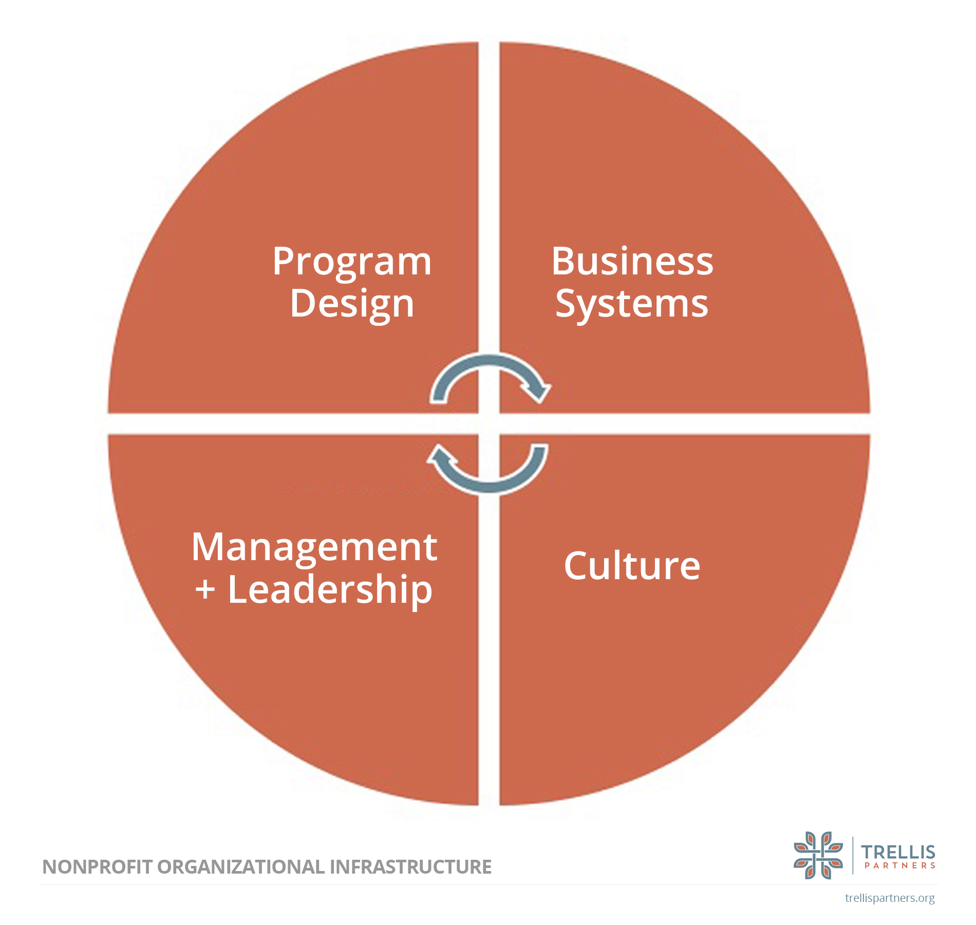 Stakeholders of all kinds, including impact investors and philanthropists, know that in order to achieve societal gains, nonprofits must possess right-sized, stable, strong infrastructures that are able to scale. This includes management strength, intentional culture, effective business systems, and integrated program planning practices.