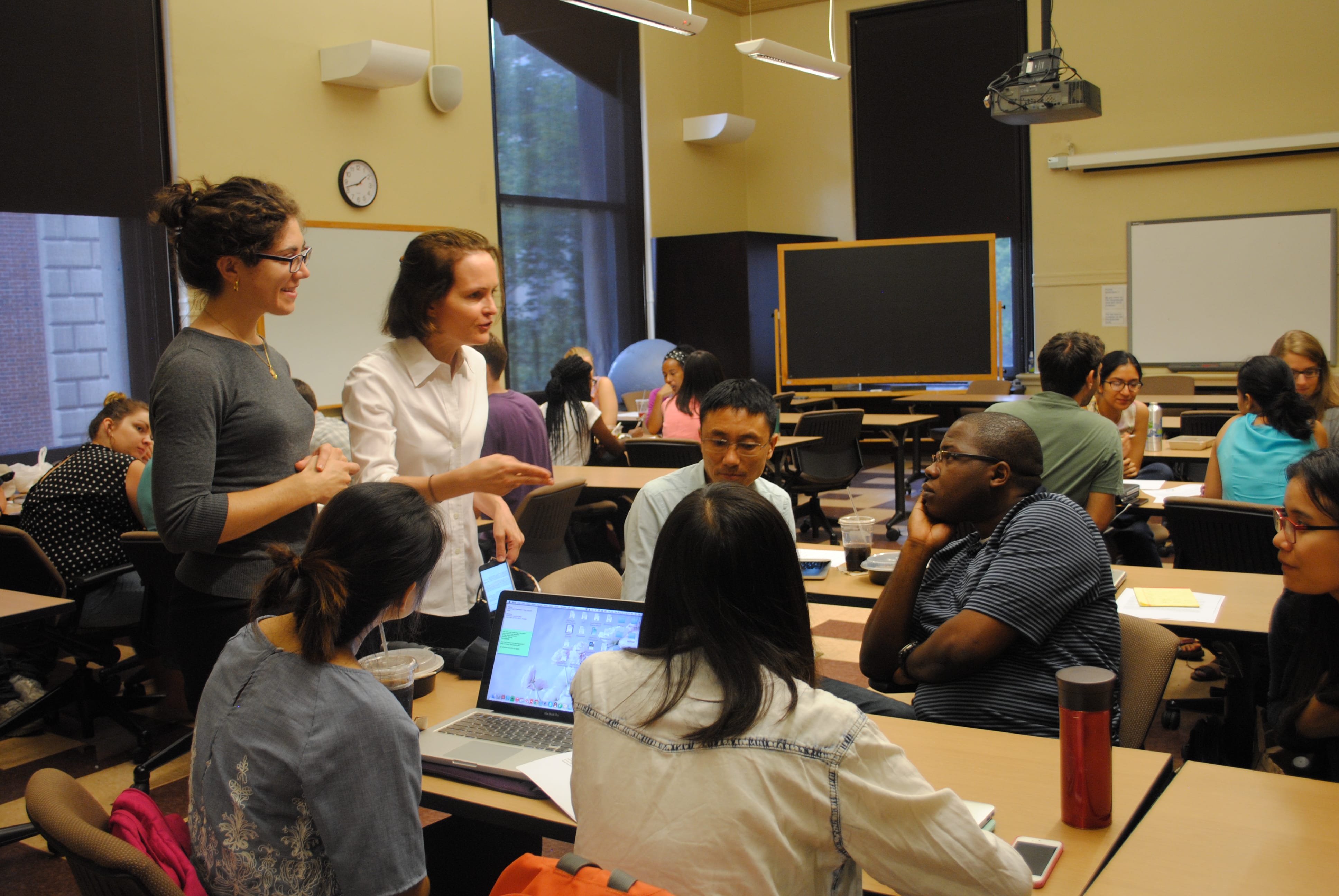 In the photo: Miranda (white shirt) guest teaching in Columbia University’s Climate and Society Masters program– photo credit to Zina Precht-Rodriguez