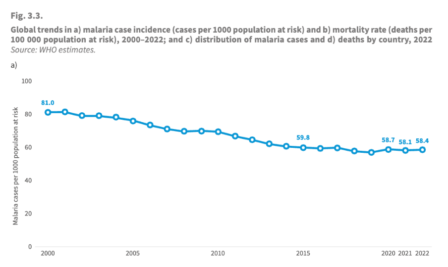 From 2021 to 2022, the world saw an additional 5 million cases of malaria, with the highest contributing increase coming from Pakistan due to the country’s devastating floods in 2022.