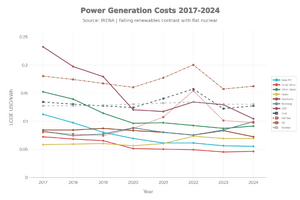 However, the chart shows that the once-promised cheap and clean nuclear power continues to lose out in price year after year to other clean energy sources, such as hydropower, geothermal, and bioenergy. This is due to long construction timelines and rising costs. In practice, the challenge of powering data centres reliably and cleanly is being addressed less by ideology and more by straightforward economics, as illustrated in the chart above.