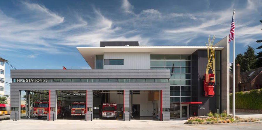 Seattle Fire Station 32 is a 18,000 square-foot fire station designed by Bohlin Cywinski Jackson, as part of the firm’s sustainable development efforts. In fact, the project has earned a LEED Platinum certification for its improved energy efficiency. The fire station, through a high level of natural daylight, a terrace overlooking a green roof as well as pleasant external views, was also built in a way so as to enhance firefighters’ well-being. In addition, its well-thought-of central location provides for quick responses of firefighters. The station’s four-story layout is a way to mitigate the apparatus bay’s compact parameters.