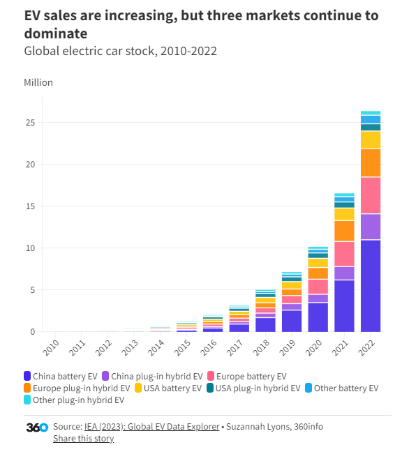 Although the global EV market has had a rapid growth in sales over the past few years, exceeding 10 million vehicles in 2022 or around 14% of all new cars sold, adoption rates are not consistent across the world.