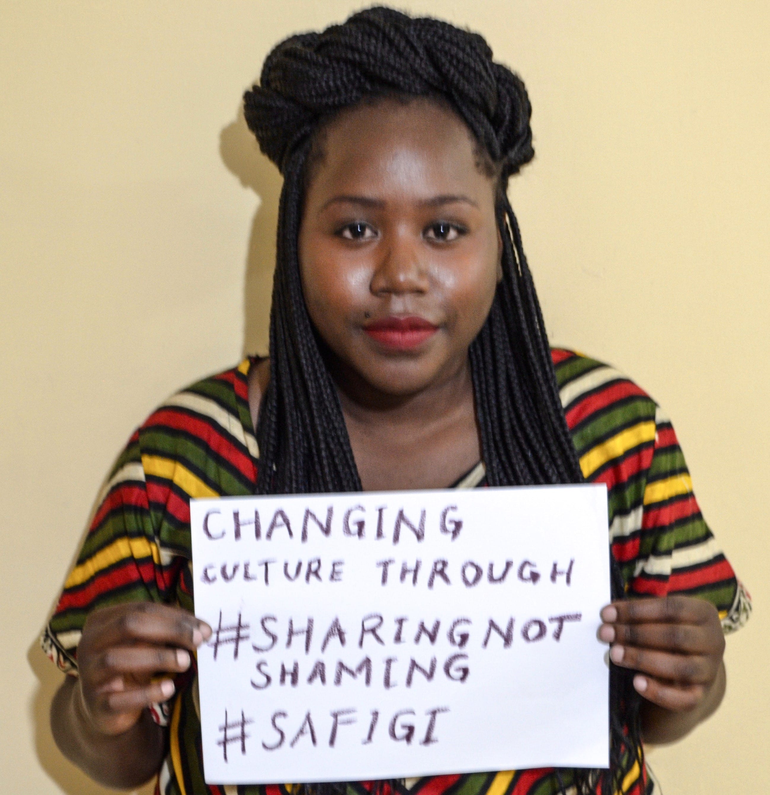 “In my culture, a woman belonging to one (self) is not celebrated and rarely tolerated. The consensus is that when a girl is born she belongs to her father or her brothers and when she is of age, she is then given away to another man, her husband who is now responsible for her…not having a father, brother or husband in your life to manage your independence was the quickest road to poverty,” writes Kenyan woman, Tessy Aura, in the campaign ‘Sharing Not Shaming’ by Safety First for Girls (SAFIGI).