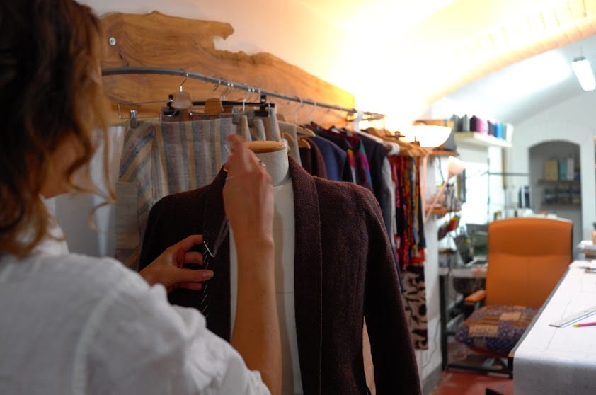 Our production process starts with who and where we source our textiles from. Whether they are textiles from smaller communities who are practicing traditional techniques or italian fabric producers, we meet the people who make these fabrics and ask them what their process is. How is everything made, are there fair working conditions, are they happy doing what they do, etc.