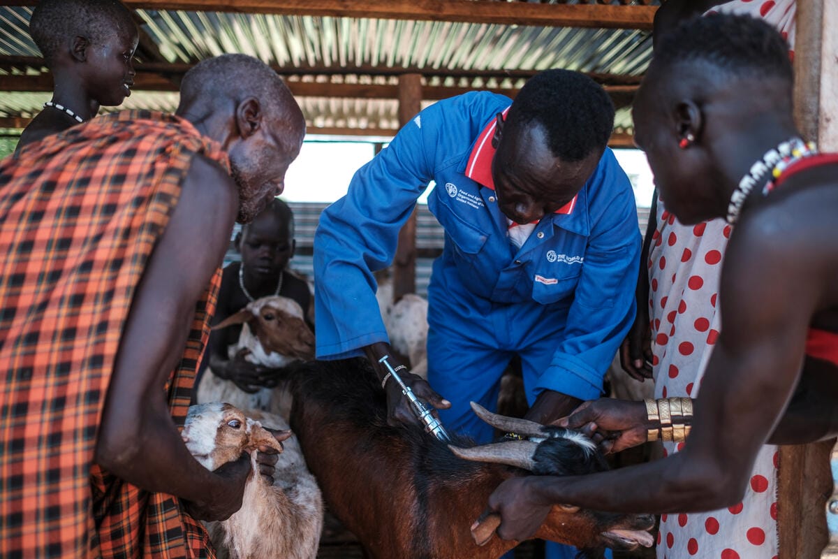 An even more crucial purpose for the vet’s visits is training Lokuru himself to administer the jabs to his animals and those of his fellow villagers. The FAO-supported training for community workers like Lokuru, who was nominated by his own village, includes administering vaccines, identifying diseases, dividing the sick animals from the healthy ones and treating them, Quinto explains.