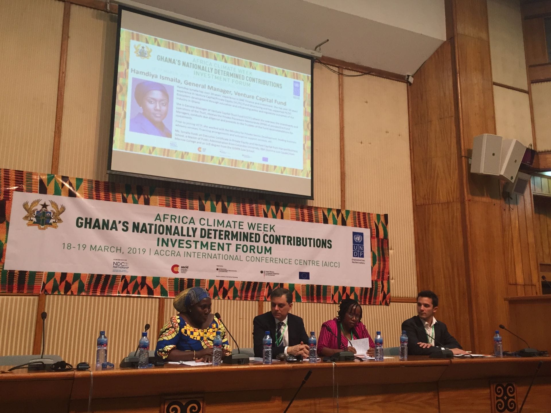 The two-day Ghana’s Nationally Determined Contribution (NDC) Investment Forum – organized by UNDP Ghana and the Ministry of Environment, under the NDC Support Programme, took place on the 18th and 19th March to catalyse private sector investment and to garner financial, as well as policy support from all relevant stakeholders, in the process of moving towards implementation of Ghana’s NDC submitted in the context of the Paris Agreement. The Investment Forum showcased proven policy, technology and finance solutions to attract private investment, presented investment-ready climate NDC projects, and introduced entry points for private sector to engage in NDC actions. Also, as one of the pioneering countries on Cooperative Approaches under Article 6 of the Paris Agreement, Ghana officially announced the Ghana-Switzerland cooperative approach for Internationally Transferred Mitigation Outcomes (ITMO) to scale-up Ghana’s Transitional National Clean Energy Access Program.