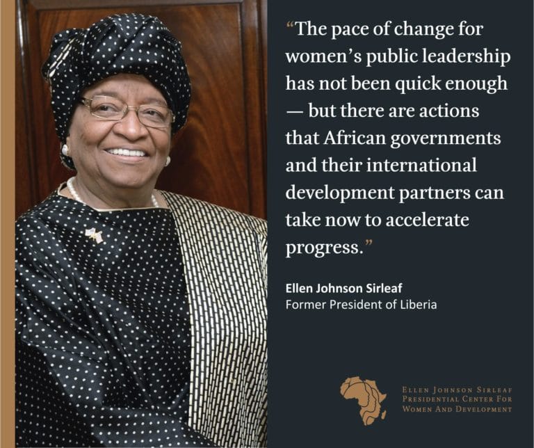 It is in this context that the Ellen Johnson Sirleaf Presidential Center for Women and Development (EJS Center) was launched earlier this year, on the cusp of COVID-19’s arrival in Africa. Founded by the first democratically elected woman president on the continent, the aim of the EJS Center is to act as a catalyst for positive change by focusing on increasing the representation of women in top public leadership roles in Africa.
